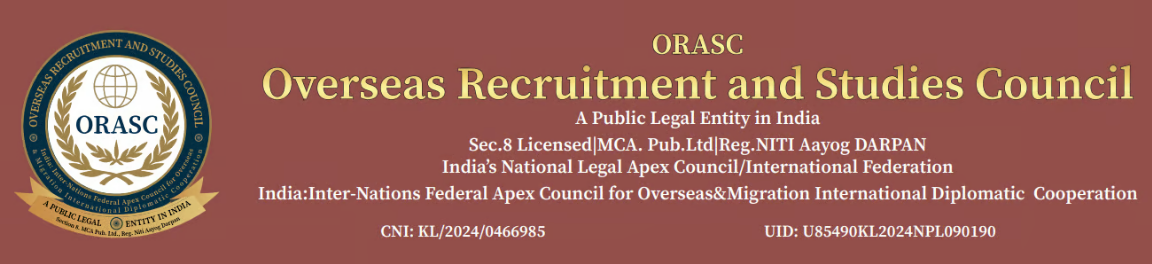 The Overseas Recruitment and Studies Council (ORASC), a Section 8 public legal entity in India, incorporated under the Ministry of Corporate Affairs and registered on the NITI Aayog DARPAN portal, advances India’s role in global migration, education, and international cooperation.